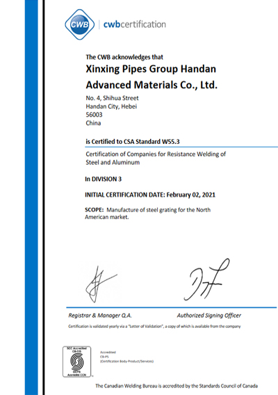 Xinxing Gratings is the exporter of gratings in China. The materials of product have passed CE certifications of European Union. The product has been sold to countries and areas like Singapore, Australia, The US, Pakistan, Japan, and Taiwan. The annual export amount is up to 30,000 tons. And it has set up stable agent relations in Singapore, Japan, Australia and Taiwan.